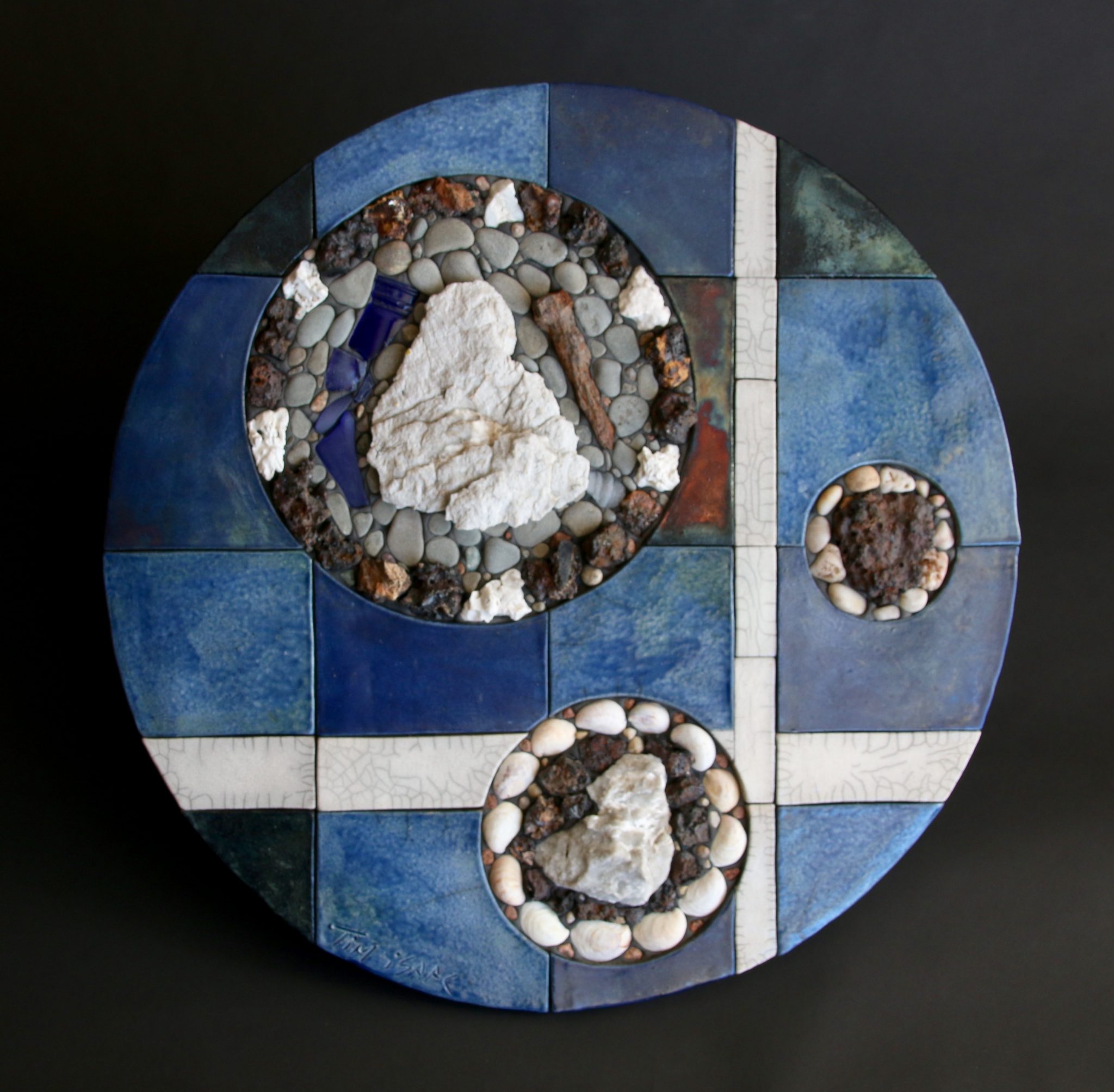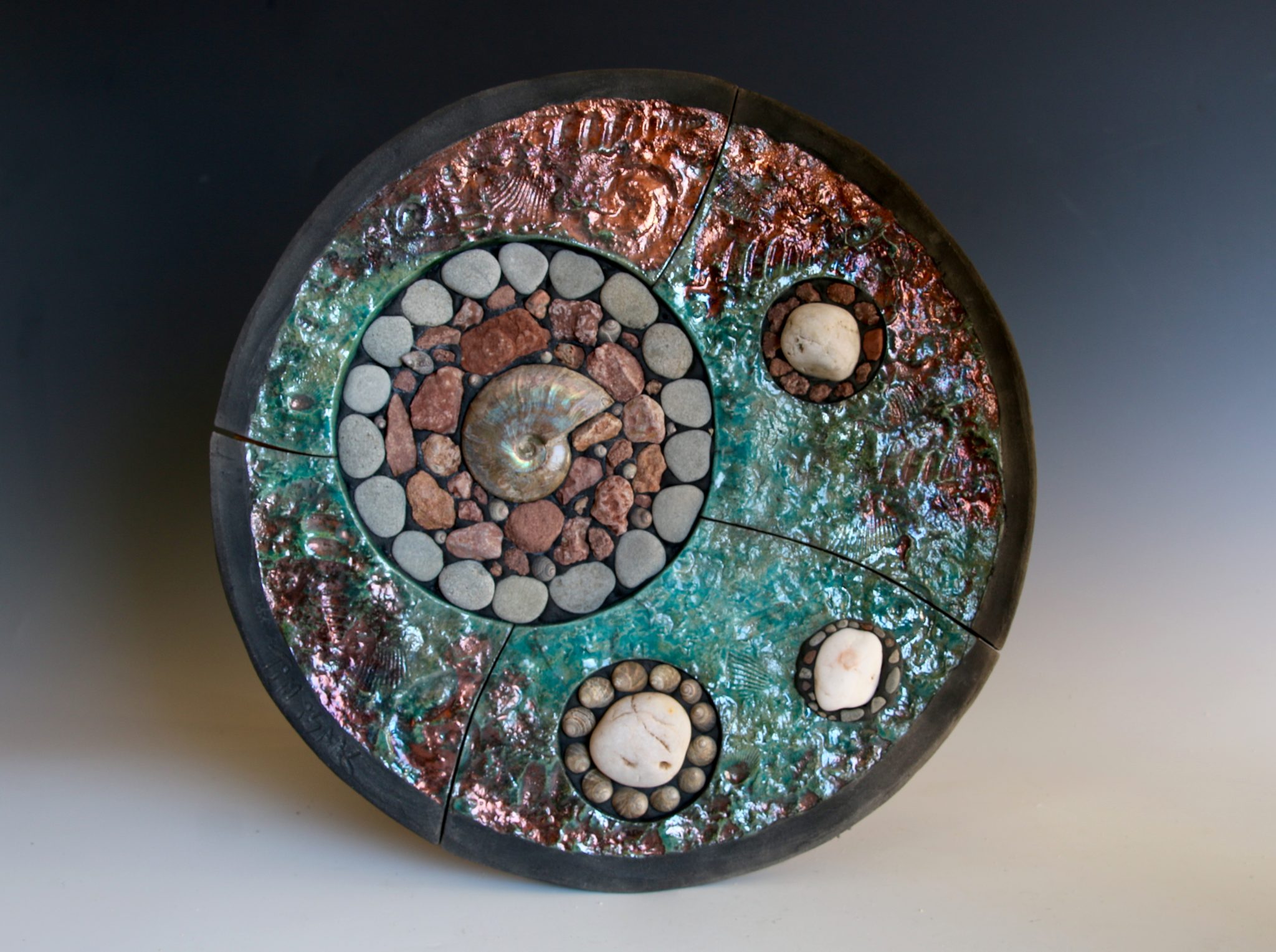 This is an especially exciting show for me. ‘Elemental Balance – The Power of the Mandala’ is an exhibit of new Mandalas combining raku fired tiles, rock, fossils and sea shells. I received support from ArtsNB for the creation of many of these new works, and this show is the culmination of 3 years of creative effort.